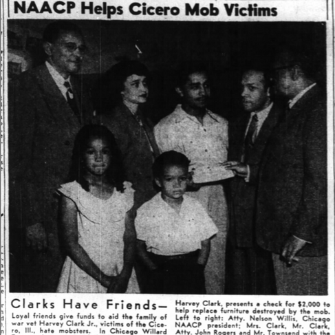 In July 1951, over 4,000 white people and 60 members of the Cicero Police Department in Illinois attacked an apartment building because a Black war veteran named Harvey E. Clark Jr., his wife, Johnetta, and their family moved in. Women, men, and teens caused $20,000 in damages and firebombed the building.
