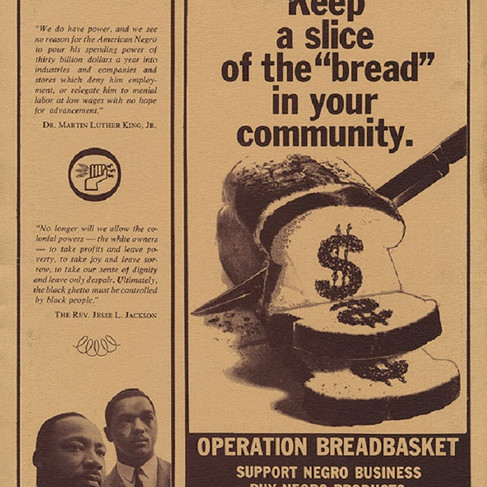 Through initiatives like the SCLC’s Operation Breadbasket in 1962, Black progress and protest were centered around business and ownership. Said Martin Luther King Jr. in 1967, "The fundamental premise of Breadbasket is a simple one. Negroes need not patronize a business which denies them jobs, or advancement [or] plain courtesy.” The importance of the Black dollar was emphasized. Jesse Jackson was appointed as head of Operation Breadbasket in 1968 by MLK, who said, “Many retail businesses and consumer-goods industries deplete the ghetto by selling to Negroes without returning to the community any of the profits through fair hiring practices.” Jackson ran the organization for three years. Black people were encouraged to "Buy Black", and to engage in selective patronage by not shopping with racist businesses that refused us equal service or jobs.